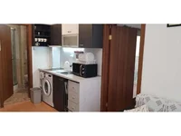 The apartment is furnished and equipped, ready for living.