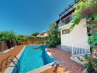 This stylish single-family house in Cholakova Cheshma, Kosharitsa, impresses with a living area of 264 m², thoughtful room layout and high-quality furniture. Nestled in a magnificent garden with a pool and palm trees, it is a true paradise for discerning buyers.