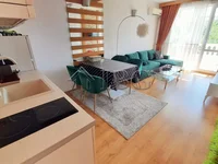 The apartment is with total area of 99 sq.m. It consists of an entrance hall, a living room with kitchen and dining area, 2 bedrooms, 2 bathrooms and 2 balconies one of them with pool view. The apartment is fully equipped with high quality furniture and appliances. It is for sale as it is on the pictures.