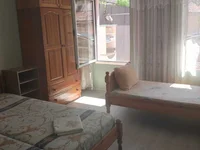 Second room with double and single beds, wardrobe, and separate kitchen (stove, refrigerator)
