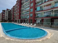 The building is not only suitable for the summer but also ideal for year-round living. The complex has everything necessary for a good vacation, both for families with children and for young people. On the grounds, featuring lush landscaping, there is an adult swimming pool with a children's area, a relaxation zone with sun loungers and umbrellas, a children's playground, a restaurant, a reception, a fitness center, 24-hour security service, parking spaces for cars, and year-round management of the complex by the property administration. A magnificent beach is located only 370 meters away. The beach is known for its golden sands, wide shoreline area, modern clubs, and restaurants. There are numerous water sports facilities, restaurants, cafes, and massage services at the beach. The Global Villa complex quarter is one of the few areas of Sunny Beach that is situated amidst greenery, with many trees and bushes, sand dunes, a river, tranquility, and peace - these are the distinctive features of this neighborhood.