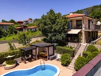 Two-Storey House with Sea View and Pool for Sale in Kosharitsa, Burgas Region IBG Real Estates is pleased to offer this spacious two-storied house with sea view and a private pool and a garage, located in the peaceful and picturesque village of Kosharitsa, only a few kilometers from Sunny Beach and the Black Sea. The property offers 239 sq.m. built-up area, situated on a plot of 610 sq.m. and it is ideal for those seeking comfort, tranquillity, and proximity to both the sea and the mountains. The house is fully furnished and ready to move in, offering everything needed for a relaxing stay or year-round living. Layout and Description: On the first floor, the house offers an entrance hall, a spacious living room with kitchen and dining area, with access to a large covered veranda, perfect for outdoor dining or relaxation, one additional room, currently furnished with a sofa, but ideal to be used as a bedroom or office, a storage room under the stairs and a bathroom with toilet and sink. The second floor consists of three bedrooms, a bathroom, and a large wrap-around terrace offering a beautiful view of the sea and surrounding nature. Behind the house, there is a large storage room, suitable for keeping tools, garden equipment and seasonal items. The property also includes a garage, and above the garage there is a covered summer sitting area with a large dining table and chairs, overlooking the pool area. This space is ideal for family gatherings and outdoor entertainment during the warm months. The landscaped yard is beautifully maintained, with decorative plants, green lawns, and a private swimming pool. The property is fully fenced and provides privacy and comfort. Location: The house is located in the village of Kosharitsa, Burgas Region – a quiet residential area surrounded by nature and fresh air, only a short drive from the lively resort Sunny Beach and the town of Nessebar. The location combines the charm of the countryside with the convenience of being close to the sea, making it suitable for both permanent residence and holiday use.