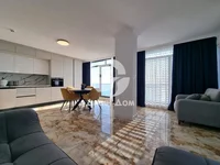 The apartment consists of: an entrance hall, a spacious stylishly furnished living room with a kitchenette, a bedroom, a modern bathroom with a toilet and a shower cabin, a terrace with a PANORAMIC SEA VIEW.