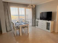 We are pleased to offer for sale a spacious two-bedroom apartment in the prestigious Villa Florence Complex in Sveti Vlas. Located on the fifth floor, the property has a total area of 118 sq.m., with an additional 40 sq.m. terrace. The apartment features several terraces with stunning views of the sea, mountains, and the complex’s pool.