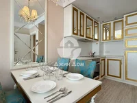 The apartment consists of: a luxurious living room with a dining area and a kitchenette, a stylish bedroom, a modern bathroom with a toilet and a shower cabin, a terrace.