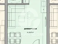 The apartment has the following layout: entrance hall, spacious living room with kitchen and dining area, bathroom with toilet and shower, terrace.