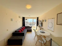 IBG Real Estates offers a spacious two-bedroom apartment in the gated Aqua Dreams complex, located on the second line from the beach in Sveti Vlas. This 100 sq.m. apartment is situated on the fourth floor of a 5-storey building and features a comfortable layout with an entrance hall, living room with kitchenette, two bedrooms, two bathrooms, and two terraces. One terrace offers sea and pool views, while the other provides mountain views. The apartment is sold fully furnished and equipped, ready to move in or rent out.