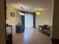 From the living room you can reach the terrace with beautiful views of the pool area of the complex - ideal for relaxing and enjoying sunny days on the Black Sea coast.