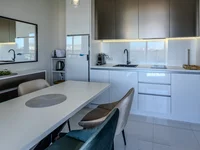 Description of object: We offer you a modern 3-room penthouse apartment in the popular Emilia Romana Verde complex in Sunny Beach, Bulgaria. The apartment impresses with its practical layout, stylish furnishings, and a breathtaking panoramic view — ideal for personal use or as a holiday property with rental potential. Property Details Living area: 118 m² Floor: 6th of 6 (with elevator) Orientation: Panoramic view of the mountains and surroundings Condition: Modernly furnished and move-in ready Layout Entrance area Living room with integrated kitchenette 2 bedrooms Bathroom Guest toilet Terrace with panoramic view Underfloor heating The apartment features bright, cheerful rooms, a practical layout for 2-3 people, and direct access to the terrace with stunning views. Fixture and fittings: We offer you a modern 3-room penthouse apartment in the popular Emilia Romana Verde complex in Sunny Beach, Bulgaria. The apartment impresses with its well-thought-out layout, stylish furnishings, and breathtaking panoramic views — ideal for personal use or as a holiday property with rental potential. Property Details Living Area: 118 m² Floor: 6th of 6 (with elevator) Orientation: Panoramic views of the mountains and surroundings Condition: Modernly furnished and move-in ready Layout & Features Living Room: Integrated kitchenette with oven, ceramic cooktop, extractor hood, refrigerator, sink, and sideboard; dining table, sofa, coffee table, chest of drawers/sideboard, and TV Bedrooms 1 & 2: Double beds, chest of drawers, and wardrobe Bathroom: Shower bath; additional guest toilet with washing machine Terrace: Panoramic view over Sunny Beach and the mountains, furnished with terrace furniture Special Features Bright, friendly rooms Practical layout for 2-3 people Direct access to the complex's pool area Fully furnished and ready to move in The Complex The Emilia Romana Verde complex features well-maintained outdoor areas, stylish design, and a central location in Sunny Beach. Supermarkets, restaurants, cafes, and the sandy beach are easily accessible. Ideal for: Holiday property, permanent residence, or an investment with rental potential. Location: The Emilia Romana Verde Complex is located in an attractive and peaceful area in the popular holiday resort of Sunny Beach. The residential complex offers a successful combination of relaxation, comfort, and good accessibility to all important facilities. Infrastructure & Surroundings Supermarkets, shops, pharmacies: reachable within a few minutes, ideal for daily needs Restaurants, cafes, and bars: numerous options in the vicinity for culinary experiences Leisure & Sports: nearby sports facilities, beach activities, mini-golf, water sports, and bike paths Healthcare: doctor's offices and pharmacies within walking distance Beach & Recreation The fine-sand beach of Sunny Beach is accessible within a few minutes on foot Numerous beach bars and sunbed rentals ensure relaxing holiday days The complex is situated quietly, away from mass tourism, yet offers quick access to all leisure activities Transport Connections Good connection to public transportation Easily accessible from Burgas Airport (about 30-35 minutes by car) Central location, ideal as a starting point for excursions in the region, e.g., to Nessebar or Sunny Beach City Character of the Location Quiet, well-maintained residential complex in a central location Appealing to owner-occupiers, holiday guests, and investors Perfect mix of relaxation, infrastructure, and tourist amenities Miscellaneous: Do you have any questions about this property or would you like to schedule a viewing? Feel free to contact us without obligation using the provided contact details.