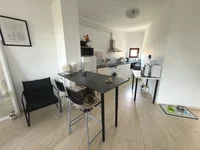 The fitted kitchen is fully equipped with modern appliances such as a refrigerator, stove, oven, and microwave. In the living area, there is a comfortable sofa, a dining table, and a television. The bedrooms are furnished with high-quality beds and wardrobes.