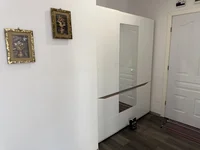 The bedroom is quietly situated and offers a comfortable double bed, wardrobe, and other functional furniture. The decor is focused on relaxation and comfort, ideal for restful nights.