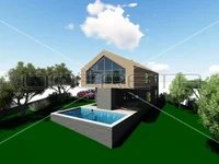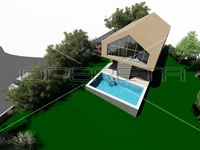The villa with a gross floor area of 310m² is situated in an exceptional location, just a 5-minute walk from the Kupa River and a well-known bathing spot amidst stunning natural surroundings.It spans over 3 floors: basement, ground floor, and upper floor. In the basement, there is a wine cellar, a wellness area with a gym, sauna, and toilet. The basement has a gross floor area of 79.5m².On the ground floor, with a gross floor area of 97.7m², you will find an open kitchen with a living room, a bedroom with an ensuite bathroom, a toilet, and a walk-in closet. It has an exit to a terrace with a 41.2m² pool. On the upper floor, with 126.78m² gross floor area, there are 3 bedrooms, each with its own bathroom, and additional space for relaxation and storage.