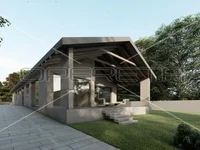 A nice building plot of 1,037 m2 is for sale next to the road with a valid building permit for a one-story family house with a garage. residential zone.