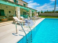 Istrian stone villa with pool for sale, built in 1930 but completely renovated. The house is located in a small Istrian village in a quiet location with open views of nature and greenery and is spread over two floors.