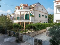 House with 4 apartments in the first row to the sea, Šimuni (Pag) On the southwest side of the island of Pag, in the town of Šimuni, which is full of pine forests, there is a house on the first line by the sea, with a landscaped yard and 4 apartments. The house was built on a plot of 347 m2 and extends over four floors, i.e. basement, ground floor and two floors. The basement floor, separated into two main spaces, is used as storage and contains a solar panel system. On the ground floor is an apartment consisting of a living room, a kitchen with a dining room, 2 bedrooms, 2 bathrooms and a covered terrace. An external staircase accesses the upper floors. The first floor consists of two apartments, each with 1 bedroom, 1 bathroom, and a living room with a kitchen and a balcony.The second floor is one apartment over the entire floor, with 3 bedrooms, 1 bathroom, a living room with a kitchen and a balcony. Between the sea and the house is a tall pine forest that gives a unique atmosphere rarely seen. The forest provides a pleasant climate, protection from the sun and a positive atmosphere but reduces the direct view of the sea. The house’s yard is divided into two parts. Preserved and full of tall plants that provide a feeling of intimacy and comfort. The front of the yard offers parking and a spacious covered terrace, while the back contains a gazebo with a barbecue and a sink. The beach, just a few steps from the house, offers the opportunity to relax on its 3 km length, with the pleasant sound of the pine forest that protects it from the sun. Šimuni, a small family town, offers all the necessary facilities for an enjoyable life, ideal for a relaxing vacation during the summer months. Virtual 360 tour: https://Opereta-d-o-o.vr-360-tour.com/e/AsgBi0xYXvY/e?hidehotspotlabels=true&hidelive=true&hidetitle=true I26624 Šimuni