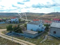 In front of the house, there is a garden, while the space behind the house is paved. In the courtyard, there is also a garage with an area of 30 m2 and two entrances.