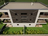 On the ground floor of a newly constructed building, there is a two-bedroom apartment with a terrace that extends to a spacious landscaped garden.