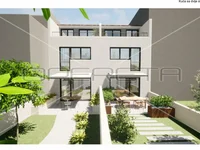 A nice semi-detached house under construction is for sale in a town only 5 km from Poreč and the beaches. The house extends over three floors. On the ground floor there is a spacious living room, dining room, open space concept kitchen and pantry, on the first floor there are two bedrooms each with its own bathroom, and on the third floor there is another master bedroom with its own bathroom and a terrace with a beautiful view of nature. The living room leads to a covered terrace where there is a summer kitchen. The house is heated by electricity as underfloor heating, and each room will have air conditioners. The total size of the house is 126 m2 and the garden is 180 m2. The parking lot is right in front of the house.The planned completion of construction is the summer of 2024.