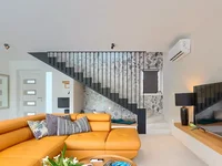 The elegance and harmony that prevails in the interior continues in the fenced yard rich in olive trees that give a charming Mediterranean touch to the luxury property.