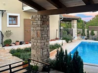 Located near the charming town of Svetvinčenat, this comfortable house with a swimming pool offers a perfect blend of rural tranquility and proximity to local amenities. Set on a 753 m² plot, the property has a total built area of 235 m² and is surrounded by nature, family homes, and vacation residences, creating a peaceful and private environment.