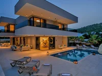 Within this enclave of luxury, a sumptuous amalgamation of twelve bedrooms awaits, each bestowed with its private bathing chamber. Graced with the allure of outdoor swimming pools affording breathtaking vistas of the azure sea, these abodes further indulge in the provision of indoor aquatic sanctuaries. Contemporary design salons, modern equipped kitchens with dining area, wonderful bright glass terraces, sauna, gym studio and swimming pool complete each offer.
