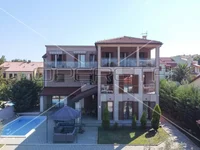 Istria, Medulin, surroundings – just 200 meters from the sea, in one of the settlements of the most developed and touristically attractive Municipality in Istria, this beautiful apartment house with a total of four apartments is located.In a quiet, dead-end street, on a plot of land of 884 m2, it extends through the ground floor – first and second floor.The total net area of the house is 517 m2.On the ground floor of the house there is one apartment of 185 m2 consisting of a hallway, a spacious living room with a kitchen and a dining room with access to a covered terrace, three bedrooms, two bathrooms, a toilet and a storage room.On the 1st floor there are two apartments (72 m2 and 85 m2), each of which has a hallway, two bedrooms, living room with kitchen and dining room, bathroom, toilet and terrace.On the 2nd floor is a spacious apartment with an area of 113 m2, consisting of a hallway, a spacious living room with an exit to the terrace with a beautiful view of the sea, three bedrooms, two bathrooms, a toilet and a storage room.Each apartment also has a storage room in the basement.Heating of the apartment on the ground floor using electric underfloor heating (whole apartment) and air conditioners. Other apartments are heated with air conditioners.The exterior includes parking spaces for six cars, a 28 m2 swimming pool and a 10 m2 garage.The lawn has an automatic irrigation system.Due to its attractive location, it is an ideal property for a tourist investment!The apartments are currently in the process of being shared, so there will be a possibility of selling the apartments separately!