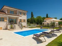 We are proud to present this high-quality, luxurious family villa, nestled in a peaceful location just a ten-minute drive from the romantic center of Rovinj, and only a short walk from the village center. What makes this villa particularly appealing is not only the superior quality of the construction, equipment, and furnishings but also the convenience of having everything needed for a safe, peaceful, and comfortable family life just steps away.