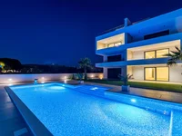 A swimming pool of 65 m2 is located in front of this modern apartment building. Real estate orientation is western.