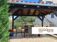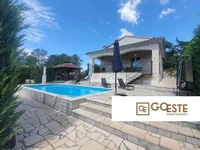 The 142 m2 residential property was built in 2013 on a 770 m2 plot. It consists of the ground floor and the first floor. On the ground floor there is an open kitchen with dining room and living room, one bedroom, an economic room and a bathroom. From the living room there is access to a covered terrace that leads to a spacious landscape garden where there is a swimming pool of 33 m2 with a sun terrace and summer kitchen. The interior staircase leads to the first floor, where there are two bedrooms with bathrooms and a covered terrace.