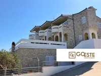 It consists of six apartments with two bedrooms with an area of 36 m2 to 48 m2 and one larger apartment with two bedrooms with a total area of 82 m2. The apartments consist of living room, kitchen with dining room, two bedrooms and a bathroom. The apartment with two bedrooms has two bathrooms. Each apartment has access to a terrace or balcony overlooking the sea. The rooms are air-conditioned and fully equipped.