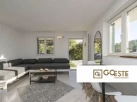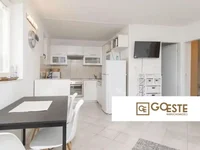 The 100 m2 house is located on a land plot of 202 m2 and is spread over two floors. Each floor has one apartment consisting of two bedrooms, a bathroom, a kitchen with a dining room and a living room. The apartment on the ground floor has access to a covered terrace with garden furniture, while the apartment on the first floor has access to a spacious outdoor terrace.
