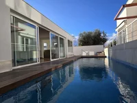 Also on the ground floor is a separate apartment with its own entrance, consisting of two bedrooms, a living room with a kitchen, a bathroom, a hallway, and a private storage room. Both kitchens in the villa are equipped with gas installations, ensuring safe and convenient cooking experiences.