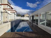 The villa's beautifully landscaped courtyard spans 777 m², with its main attraction being a 40 m² heated swimming pool, perfect for year-round use. This feature significantly enhances the villa’s rental potential, ensuring a faster return on investment. Adjacent to the pool is a detached 56 m² wellness facility, newly renovated and featuring a sauna, jacuzzi, hydromassage shower, toilet, and laundry area. The outdoor summer kitchen, complete with a fireplace, provides the perfect setting for entertaining and enjoying delicious grilled specialties.