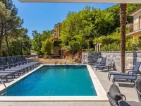 Location: Opatija Built: 2022 Opatija center: 16 km Sea: 0.55 km Airport distance: 24 km Inside space: 330 m2 Plot size: 1234 m2 Bedrooms: 7 Bathrooms: 8 Swimming pool: 44 m2 Parking: 3 Air-conditioner Sauna Cameras Patio Garden