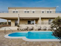 Location: Sukosan Built: 2018 Renovated: 2020 Zadar center: 16 km Sea: 3.6 km Airport distance: 6 km Inside space: 412 m2 Plot size: 909 m2 Bedrooms: 4 Bathrooms: 4 Swimming pool: 35 m2 heated Parking: 4 Air-conditioner Cameras Patio Basement Playground Garden
