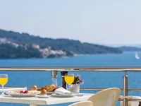 This beautiful property is just 3 km away from the city center and only 500 m away from the seashore making it ideal for investors with a clear vision and not afraid of a challenge! A hotel for sale spreads over 550 m2 on an overall 1250 m2 property and is fully and functionally equipped with 18 bedrooms, 18 bathrooms, parking space, a large swimming pool, and all other amenities that a hotel of this proportions can offer. With all things this property has to offer the stunning view over the islands and the sea must be the most astonishing feature. You can’t get better than that! It’s modern indoor yet the slightly traditional style is what gives this place the character of this region. Representing the spirit of the area and local cuisine with traditional touches makes this hotel a charming tropical oasis. By becoming an owner of such elegant looking hotel you will serve your future guests pure elegance. With everything being practically ready to be handed over and used as it is there is still a lot of potential space to upgrade the existing situation. For those who would like to dive in and explore that option and experience, those endless sunsets over the bay area don’t think twice as this area is becoming a top tourist and real estate destination in the past couple of years. Discover Trogir and the surrounding area in all their glory by checking out this stunning property as soon as possible so you can start your new real estate adventure as! We guarantee you premium quality estate that will fulfill all of your demands for an attractive price and amazing service from our team in Croatia Real Estate!