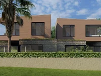 A newly built luxury semi-detached house with a rooftop terrace and pool is for sale, located just 1.8 km from the sea and the town of Poreč.