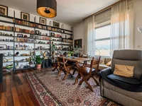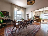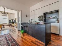 The apartment was completely renovated 15 years ago. The floors were stripped to the beams, and modern lightweight insulation, OSB boards, insulating carpet, and top-quality African mahogany parquet in the main area and solid oak in the entrance area were installed. All installations (water, electricity, gas, and heating) are new. The original interior woodwork has been fully renovated. The original exterior joinery facing the street was restored, while the courtyard-facing windows were replaced with PVC on the outside and oak wood on the inside. All openings have electric shutters. The ceilings have been lowered to 3.30 m. Renovated original doors were installed. The kitchen is custom-made from mahogany plywood. Appliances include Miele (fridge and oven), Gaggenau (induction cooktop), Bosch (dishwasher), and countertops are made of brushed and burned black granite. In 2023, a new condensing boiler was installed. The hot water system includes a tank, so there is no waiting for hot water.