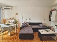 The apartment is located on the first floor of a well-constructed building and has a total area of 74 square meters. It consists of a living room with a kitchen and dining area, two bedrooms, a bathroom, and a terrace. The interior is very well maintained and fully equipped with all necessary technical appliances and quality furniture, allowing for immediate move-in without additional investment. The apartment also comes with a dedicated parking space.