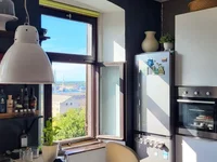 There is a large living room with beautiful open kitchen, a large bathroom / WC, and two more rooms – currently one bedroom and a children's room. The truly unique apartment: through the many windows all rooms have a lot of light – direct sunlight only at sunset – and all rooms have a magnificent view of Pula, the port and the sea!