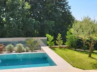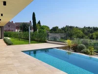 A highly interesting architectural bungalow: for living, or for holidays! Located at the end of a quiet village near Svetvincenat from classic stone houses, with several newly built villas in the surrounding area – in a quiet green area in central Istria, without a road. With good infrastructure: the nearest bars, restaurants and shops are only about 3km. At the sea you are in Rovinj and Fazana about 15-20 minutes driving time, at the same time on the east coast near Trget and Labin. The city of Pula and the nearest airport are also only about 25km away!