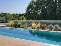 The three bedrooms have all their own bathroom/WC – and all direct access to the garden/pool. Right in front of the pool is the large living room / dining room / kitchen – also outside naturally covered summer kitchen. The panorama of both the terraces and the living rooms is unique – opposite meadows & forests, the most beautiful nature that remains. It's all agricultural land, not a building land. And as a result, garden and pool were poured and a concrete wall forms the property boundary, you have a view as from the first floor! Truly a panoramic garden!