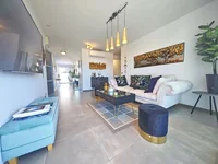 The apartment is arranged on a single floor within a contemporary residential building and covers a total area of 107 square meters. It consists of an entrance hallway, a spacious living room connected to the kitchen and dining area, two comfortable bedrooms, two modern bathrooms, a covered terrace, and an additional rear terrace with access to the garden. The beautifully landscaped garden features a swimming pool and a built-in barbecue, ideal for social gatherings and relaxation in the privacy of your own home. The apartment also includes a 12-square-meter storage room located within the shared facilities of the building.
