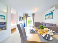 At STAN GRAD Immobilien, we are offering two exceptional apartments located in the attractive northern Adriatic area, on the island of Krk. The property is situated in Malinska, in a peaceful and appealing location close to the sea and the very center of the town, while also being excellently connected to the rest of the island. It is a spacious property consisting of two apartments with separate entrances. Within a modernly designed building, the apartments extend over the ground floor and the first floor with a total area of 107 m². On the first floor, there is a living room, a kitchen with a dining area, two bedrooms, a bathroom, and a terrace with a beautiful view. The ground floor apartment includes an entrance hall, living room, kitchen with dining area, bathroom, and bedroom, with the added benefit of a landscaped garden of 76 m². The interior spaces are equipped with functional furniture and the necessary technical equipment, ensuring comfortable living. On the adjoining part of the property, two parking spaces are provided. Thanks to its excellent orientation, the apartments offer a wonderful view of the sea and the coastline, further enhancing the attractiveness of this property. The property is owned by a private individual, and the buyer is required to pay a 3% real estate transfer tax upon registration of ownership. The owner guarantees complete and orderly technical and ownership documentation, ensuring a straightforward transfer of ownership. Our expert team at STAN GRAD Immobilien is at your disposal for any additional information, property presentations, legal verification, and negotiations with the seller. We also provide full support with the ownership transfer and the reassignment of utility accounts for electricity, water, and communal services to your name. ID CODE: 103464