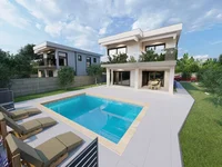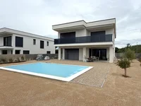 A newly built detached villa with a private pool and sea view is available for sale near the town of Krk on the island of Krk, just 1,000 meters from the sea. Located in a peaceful area surrounded by nature, this elegant villa offers 197 m² of living space on a 700 m² plot, combining comfort, privacy, and modern Mediterranean design.