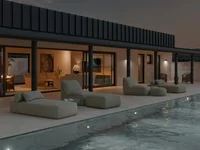 The villa is constructed with high-quality materials, ensuring long-term comfort and durability. Its architecture complements the natural surroundings, creating a synergy of modern design and the landscape. The villa spans a single, elegantly furnished floor, offering a harmonious living environment that is bathed in natural light and exudes sophistication and comfort.