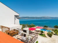 Description of object: In Slatina on the island of Čiovo, there is a house that does not play with anything and yet offers something that has almost disappeared from the market today. There is nothing standing between the garden and the pebble beach. Direct access to the sea from your own plot is a luxury that is hardly ever built anymore, which is why this property has a value that keeps up with the growing demand for unique places by the water. The flat plot of 753 m² offers plenty of space, privacy and an open view of the entire Adriatic Sea. The house with a living area of 260 m² has five rooms, a separate apartment and two large terraces of 40 and 50 m², from which the view is like a postcard. Four bathrooms, two kitchens and a generous living area can comfortably handle family celebrations, summer visits and a fully occupied season. It includes an 80 m² garage, cellar, technical rooms, outdoor pool, jacuzzi, fitness facilities and space for a boat. Parking for more than eight cars, air conditioning, fast internet and the option of heating with a fireplace or stove ensure comfort all year round. The layout is practical and well thought out. The ground floor serves as a garage, storage and recreational area, the first floor is the main living area with a terrace and the second floor offers four rooms, most of which have a sea view. The house is regularly maintained and expanded with an emphasis on functionality and long-term value. The property currently operates as an established tourist facility with approximately 120 occupied days during the high season. Summer rentals generate an annual gross income of around 70,000 euros and in the off-season the house is sought after for longer stays, which brings in at least another 15,000 euros. The investment has been working from day one and offers further growth potential. Slatine is a quiet Dalmatian village on the island of Čiovo, connected to the mainland by a bridge. It combines clear sea, beautiful beaches and a traditional atmosphere with quick access to Split and historic Trogir. The village center is approximately one kilometer away, a shop and restaurant only one hundred meters away, a pharmacy 1.5 km away and the hospital in Trogir eight kilometers away. There is a bus connection, a boat line to Split and Trogir, boat rentals, an aqua park and other summer attractions within easy reach. The airport is approximately ten kilometers away, so travel is convenient and fast. This villa is a combination of a family home, a holiday retreat and a stable investment with year-round income. It is a place where memories of summer evenings by the water are created and where the investment has a solid foundation in a unique location. All information provided in this advertisement is for informational purposes only. Before making any decision or acting based on this information, it is necessary to verify all information with our real estate agency.