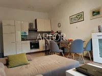 The apartment has 65.60 m² and has a functional layout and consists of two bedrooms, one of which has a view of part of the city and the Kvarner Bay, while the other has access to a 3 m² balcony, oriented towards a quiet courtyard. The living room, kitchen and dining room are arranged in an open-space concept, which gives the space additional airiness and a pleasant atmosphere. The apartment also has a woodshed.
