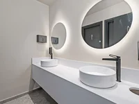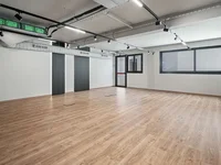 There is a kitchen and toilets on each floor as well as a conference room. It is an open plan design and will be finished with an industrial look.