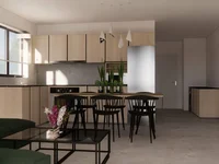 On the ground floor, there is a functionally designed parking space for the apartments and storage spaces.